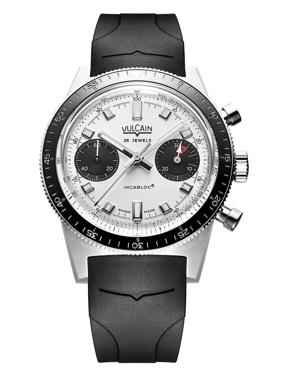 This is a 39.7 stainless steel case with an ETA 7753 automatic chronograph movement with a 42 hour power reserve.